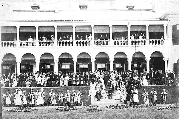 zurück Prinz Heinrich von Preußen in Shanghai weiter![]() S.K.H. im "Country Club" nach dem tiffin (lunch) am 19.04.1898 |